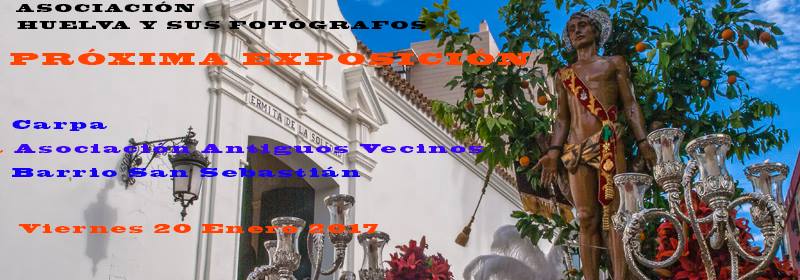 El próximo dia 20 de enero por la tarde (y hasta el 22) nuestra «Asociación Huelva y sus Fotógrafos», inaugura una muestra de fotografías en la Carpa junto a la Ermita de la Soledad, con motivo de las Fiestas Patronales de San Sebastián… temática HUELVA… Al igual que el año pasado, la Asociación de Vecinos de San Sebastián, contactó con nosotros para que colaboráramos con una Exposición durante las fiestas Patronales